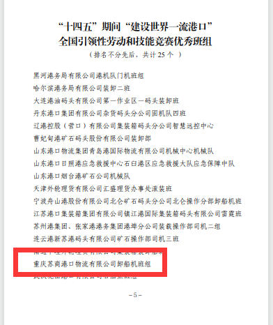 喜 报!化码公司和万州港苏商公司卸船机班组获得中国海员建设工会“十四五”期间“...